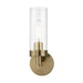 Add a dash of character and radiance to your home with this wall sconce. This single-light fixture from the Ludlow Collection features an antique brass finish with a clear glass. The clean lines of the back plate complement the cylindrical glass shade creating a minimal, sleek, urban look that works well in most decors. This fixture adds upscale charm and contemporary aesthetics to your home.