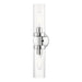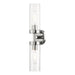 Add a dash of character and radiance to your home with this wall sconce. This two-light fixture from the Ludlow Collection features a polished chrome finish with a clear glass. The clean lines of the back plate complement the cylindrical glass shades creating a minimal, sleek, urban look that works well in most decors. This fixture adds upscale charm and contemporary aesthetics to your home.
