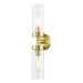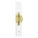 Add a dash of character and radiance to your home with this wall sconce. This two-light fixture from the Ludlow Collection features a satin brass finish with a clear glass. The clean lines of the back plate complement the cylindrical glass shades creating a minimal, sleek, urban look that works well in most decors. This fixture adds upscale charm and contemporary aesthetics to your home.