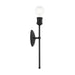 Simplicity and attention to detail are the key elements of the Lansdale collection. The dimensional form, exposed bulbs and combination of finishes adds a playful mood to a contemporary or urban interior. This single-light sconce design gives a new face to a bedroom, hallway or a bathroom vanity. It is shown in a black finish.