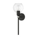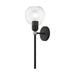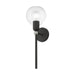 Bring a refined lighting style to your bath area with this downtown collection single light sconce. Shown in a black finish with brushed nickel finish accent and clear sphere glass.