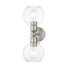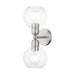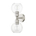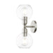 Bring a refined lighting style to your bath area with this downtown collection two light vanity sconce. Shown in a brushed nickel finish with clear sphere glass.