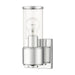 The stunning Quincy sconce features a polished chrome finish with clear glass. This sleek design will brighten up any bathroom or wall application.