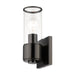The stunning Quincy sconce features a black chrome finish with clear glass. This sleek design will brighten up any bathroom or wall application.