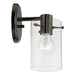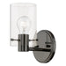 The Munich transitional single sconce will bring posh sophistication to your decor. The backplate and clear cylinder glass give this polished black chrome finish a sleek, contemporary look.