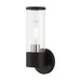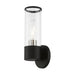 Add a dash of character and radiance to your home with this wall sconce. This single-light fixture from the banca collection features a black finish with clear hand blown glass intentionally exposing the bulb inside for a trendy look. The clean lines of the back plate complement the cylindrical glass shade adorned with detailed trim on top creating an industrial, sleek, urban look that works well in most of today's interiors. This fixture adds upscale charm and contemporary aesthetics to your home.
