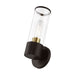 Add a dash of character and radiance to your home with this wall sconce. This single-light fixture from the banca collection features a satin brass finish with clear hand blown glass intentionally exposing the bulb inside for a trendy look. The clean lines of the back plate complement the cylindrical glass shade adorned with detailed trim on top creating an industrial, sleek, urban look that works well in most of today's interiors. This fixture adds upscale charm and contemporary aesthetics to your home.