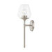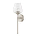 This one light vanity sconce from the willow collection has understated elegance. It features minimal details, clear curved glass with a brushed nickel finish and can fit into any decor.