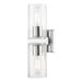 The clarion transitional two light vanity sconce will bring posh sophistication to your decor. The backplate and clear cylinder glass give this polished chrome finish a sleek, contemporary look.