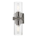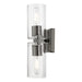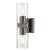 The clarion transitional two light vanity sconce will bring posh sophistication to your decor. The backplate and clear cylinder glass give this black chrome finish a sleek, contemporary look.