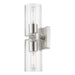The clarion transitional two light vanity sconce will bring posh sophistication to your decor. The backplate and clear cylinder glass give this brushed nickel finish a sleek, contemporary look.