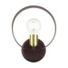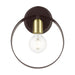 The Modesto collection hints at a casual mid-century modern vibe. It features steel straps that form beautiful circular shapes. The exposed bulbs and two-toned combination of finishes create a fashionable statement for today`s interiors. This single-light wall sconce is shown in a bronze finish with a satin brass accent. It will look fantastic in your mid-century modern loft living room, hallway, bathroom or any contemporary style interior.