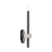 The clean lines of the Denmark collection remind of early modern Scandinavian style. The slim candles rise on the contrasting bar at different heights dynamically emulating the shape of a city skyline. This single-light exposed bulb sconce comes in a black chrome finish with brushed nickel finish bars. Versatile enough for almost any interior where dramatic statement is needed such as a bathroom, hallway, dining room, living room or bedroom.