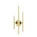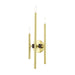 The clean lines of the Denmark collection remind of early modern Scandinavian style. The slim candles rise on the contrasting bar at different heights dynamically emulating the shape of a city skyline. This triple-light exposed bulb sconce comes in a satin brass finish accented with bronze finish bars. Versatile enough for almost any interior where dramatic statement is needed such as a bathroom, hallway, dining room, living room or bedroom.