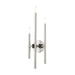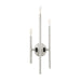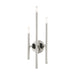 The clean lines of the Denmark collection remind of early modern Scandinavian style. The slim candles rise on the contrasting bar at different heights dynamically emulating the shape of a city skyline. This triple-light exposed bulb sconce comes in a brushed nickel finish accented with black finish bars. Versatile enough for almost any interior where dramatic statement is needed such as a bathroom, hallway, dining room, living room or bedroom.