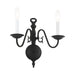 Simple, yet refined, this traditional, colonial wall sconce is a perennial favorite. Part of the Williamsburgh series, this handsome double light sconce is a timeless beauty. It is shown in a black finish.