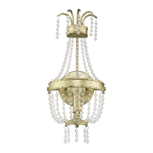 A beautiful cascade of clear crystal beads creates a striking effect of refracted light. This one light wall sconce is finished in a hand applied w...