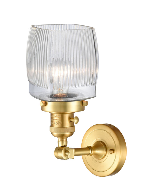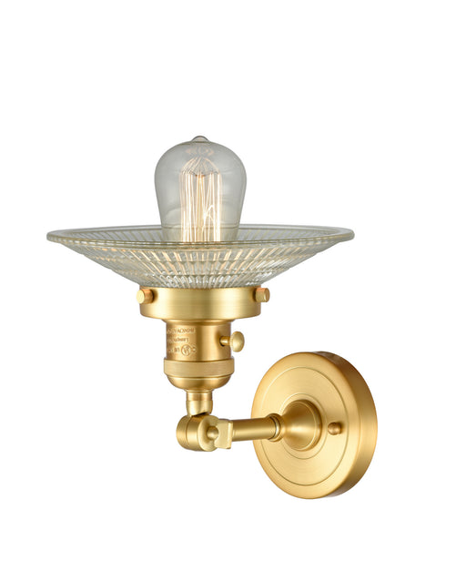 Colton - 1 Light - 6 inch - Satin Gold - Clear Halophane Shade - SconceDetails:Product Type: Single GlassFinish: Satin GoldShade: Thick Clear Halop...