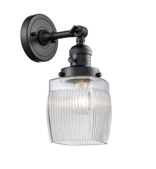 Colton - 1 Light - 6 inch - Matte Black - Clear Halophane Shade - SconceDetails:Product Type: Single GlassFinish: Matte BlackShade: Thick Clear Hal...