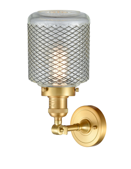 Stanton - 1 Light - 6 inch - Satin Gold - Clear Wire Mesh Shade - SconceDetails:Product Type: Single GlassFinish: Satin GoldShade: Clear Wire Mesh ...