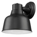 From Acclaim Lighting, this outdoor wall light fixture offers a stylized farmhouse look for your home. It comes in a black finish steel frame, with clean lines and a dome shaped shade, that form an eye-catching silhouette. Light nicely bounces off the inner painted white finish.