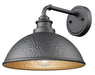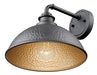 From Acclaim Lighting, this outdoor wall light fixture offers a stylized farmhouse look for your home. It comes in a black finish steel frame, with hammered detailing and a dome shaped shade, that forms an eye-catching silhouette. Light nicely bounces off the inner painted gold finish.