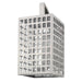 Though there are squares, Collection is not square. A framework of steel in a continuous grid pattern combines with clear, seedy glass. Collection is available in oil-rubbed bronze and satin nickel.