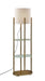 Light up your living room, bedroom or home office with the Adesso Norman Shelf Floor Lamp. A space efficient oval shape allows this lamp to fit perfectly beside the couch or bedside. A brushed brass metal finish paired with frosted glass shelves and a soft, off-white textured fabric creates a high end modern look with high quality materials. A black and white fabric cover turns the power cord to a decorative touch. A simple pull chain switch turns the lamp on and off.