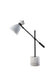 Black and white metal finishes make up the composition of the Sadie Desk Lamp. Adjust the arm up and down and use the 360 degree swivel on the shade to focus the light directly where it is needed. A chunky white marble base elevates the look while providing a heavy, stable stance for this upscale, contemporary desk lamp. A simple on/off switch is located on the shade. Set this lamp on your desk or next to your favorite reading chair to add style and efficience.