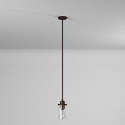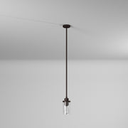 The Menlo Park Collection is painted in a dark chocolate finish, and complimented with a clear cylinder glass. Spherical clean lines throughout gives this collection the status of an instant classic. Shown with Edison filament bulbs to convey the retro look. Single light pendant model