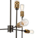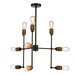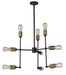 Precise mechanized machine sockets make the "Jersey" collection fit into that popular urban type design. Suspended by a matte black frame with extra rods for easy height adjustment. (Comes with hang straight for sloped ceilings). Sockets are finish in a plated vintage brass color.