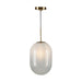 The Vita single pendant collection features a distinctive oversized glass design, adding a unique and eye-catching element to its contemporary lighting aesthetic. This model is shown with a ombre gradient white glass on a brushed brass frame. This model is easily height adjustable.