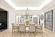 This 6 light large chandelier from the "Breezy Point" collection features a unique design plated in polished nickel. A perfect compliment to any ceiling. Comes with multiple rods for height adjustment and a hang straight for sloped ceilings. Also available in a two tone version - bronze & satin brass.