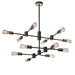 Modular in design, the "Tribeca" series elegantly adopts the beauty of retro Edison bulbs (not included). This version has a trendy two tone color factor. The frame is matte black while the socket cover, arm connectors and part of the canopy are in plated satin brass. An instant classic which brightens up any area. 12 light model shown - smaller sizes also available. Comes with hang straight for sloped ceilings and multiple rods for desired height.