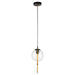 From the Lighting Pulse design firm, this Lugano collection single pendant features clear round glassware which is complimented by a vintage brass encasing on a black frame.