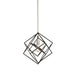 Stunning in design, this two tone multiple square pendant from the "Artistry" collection is an instant classic. The interior has a polished nickel frame, while the exterior frame is a matte black finish. Multiple rods included with hangstraight for sloped ceilings. (Also available in black with harvest brown)