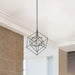 Geometric in design the Artistry collection is meets the transitional type décor criteria. The outer frame is matte black and the interior is plated in polished nickel. Single pendant shown. (Also available with harvest brass interior)