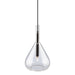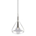 The Conic collection features a uniquely shaped glass design suspended on black frames. The glass is suspended by 3 nickel bullets to give it a floating effect. The bottom of the glass is open for each access to the bulbs. To finish off the design, the wiring has black textile covering.