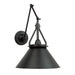 This model from the "Brydon Collection" features a black metal shade with black arms and canopy. This design is industrial looking and has multiple hinges for adjustability. This model can be a wall bracket or straight rod pendant (extra 12" rod included for height if needed). If hanging as a wall sconce you can adjust the height and extension to your desired position.
