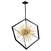 The Sunburst Collection chandelier is unique and a definitely beautiful focal point. The exterior frame is matte black encasing a satin brass cluster of thin hollow rods. (Larger size and flush mount also available)