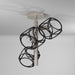 Beautifully styled, the "Sorrento" collection semi flush mount features a circular orb designs comprised of smaller circles. The exterior orb is finished is a luxurious matte black while the interior frame is plated in a satin nickel finish.