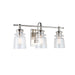 From the Lighting Pulse design firm, the "Castara" collection 3 light bathroom vanity features a classic transitional clean design with clear glassware and a polished nickel frame. (also available with a black frame)