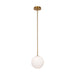 The Aurelia Collection is defined by its contemporary allure, featuring a warm brushed brass frame. Each arm of the chandelier is adorned with beautiful spherical white glassware, creating a visually striking contrast and emitting a soft, inviting illumination. This collection seamlessly marries sleek design with a warm aesthetic, making it a stylish and captivating addition to any space. Single light pendant shown (height adjustable via extra rods included)