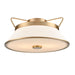 The Layla collection, designed by Kevin Kraemer, features a rich plated brushed brass finished frame, which holds the linen shades in a unique fashion. Semi flushmount model shown.