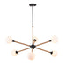 The Capilano collection features an elegant design enveloped in stylish natural jute, complemented by a black metal frame and circular white acid glassware. The fixture boasts clean lines, enhancing its overall aesthetic appeal. The careful integration of these elements creates a sophisticated and attractive lighting solution. The model shown is a 6 lite height adjustable chandelier. (built in hangstraight for sloped ceilings) (G9 socket)
