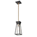 The Lucian collection, designed by Kevin Kraemer, is a modern twist on a classical lantern style light. Shown in a black with brushed brass accents (also available in a plated brushed brass finsh). Clear panel glassware surrounding the bulb. The model shown is a single pendant which comes with extra rods for easy height adjustment and has a hangstraight to be compatible with sloped ceilings.