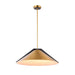 The Baltic Collection is a chic lighting fixture showcasing a metal shade that exudes contemporary style. With a sleek brushed brass finish and tasteful black accents, this pendant adds a touch of modern to any table, island or bar. Its minimalist design and contrasting colors make it a versatile and eye-catching addition. 24" diameter pendant shown (also available in a 15" diameter). (Comes with extra rods for easy height adjustment)
