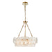 The defining feature of the Bloom collection lies in its enchanting glassware, meticulously crafted to resemble delicate and intricate flowers. The combination of the lustrous brass metal work and the floral-inspired glass elements makes this collection a captivating focal point for any space. The 14 light 23.5" diameter chandelier is shown. (height adjustable via chain)