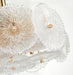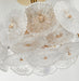 The defining feature of the Bloom collection lies in its enchanting glassware, meticulously crafted to resemble delicate and intricate flowers. The combination of the lustrous brass metal work and the floral-inspired glass elements makes this collection a captivating focal point for any space. The 6 lite semi flushmount is shown. (Matching chandeliers and wall sconce available)