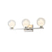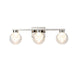 The Colton collection 3 lite bathroom vanity exudes contemporary elegance with its polished nickel frame, radiating refined charm. Its double glass design—clear outer and frosted inner—creates a mesmerizing glow, enhanced by energy-efficient LED illumination. Tailored to your ambiance, a convenient 3CCT switch allows you to choose between warm (3K), neutral (4K), or cool (5K) color temperatures. Perfect for modern interiors, this fixture blends practicality and artistry effortlessly. Great for a bathroom or vanity.
